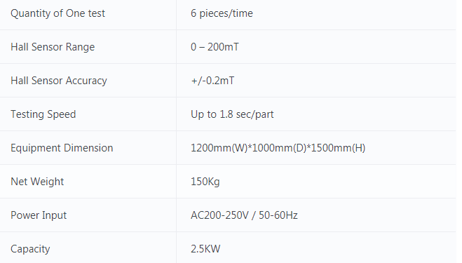 測(cè)試項(xiàng)目包括極數(shù)、N/S通量密度、最小通量、最大通量、單節(jié)距誤差、累計(jì)節(jié)距誤差等。