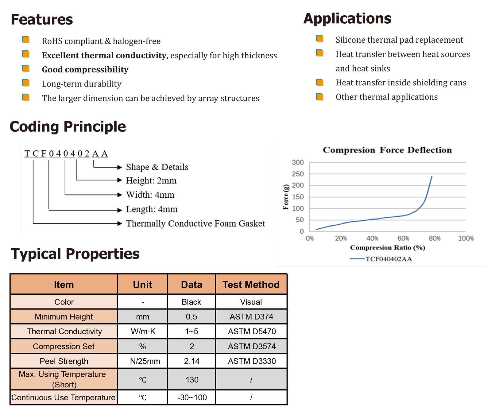 首頁 > 產品 > 熱管理材料 > 熱界面材料 (TIMs) > TCF系列導熱泡棉墊片