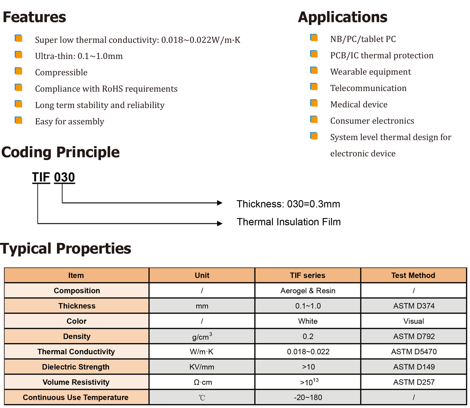 首頁 > 產品 > 熱管理材料 > 納米隔熱膜 > TIF系列超薄納米隔熱膜