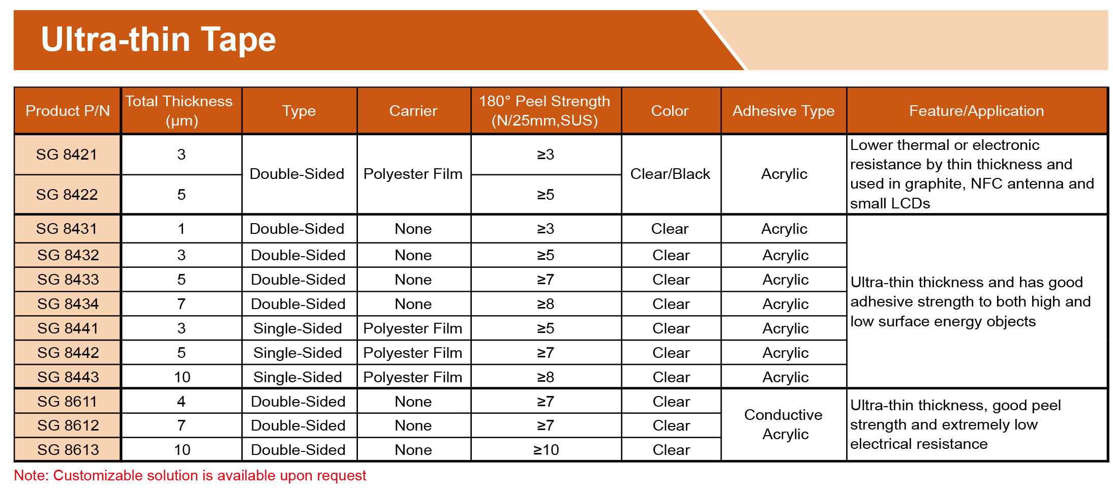 提供各種膠帶,由PET、無紡布、泡沫、涂有丙烯酸、硅樹脂、橡膠、熱熔、熱轉(zhuǎn)化粘合劑的PI基材制成。可提供各種寬度、長(zhǎng)度和釋放襯墊,以滿足特定需求,專為工業(yè)、商業(yè)和家庭應(yīng)用的特殊環(huán)境而設(shè)計(jì)。