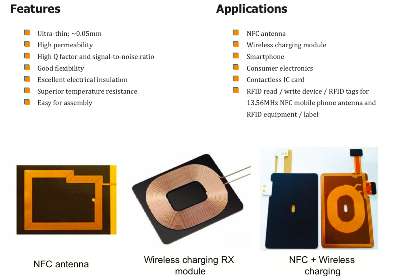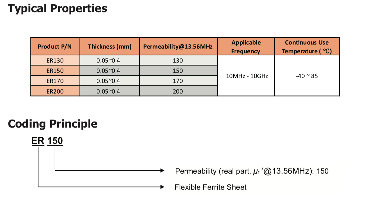 TM ER系列是一種薄的燒結高磁導率鐵氧體板,封裝在PET薄膜和壓敏粘合劑之間。該產品有效解決了金屬環境對RX天線模塊的干擾影響。" />