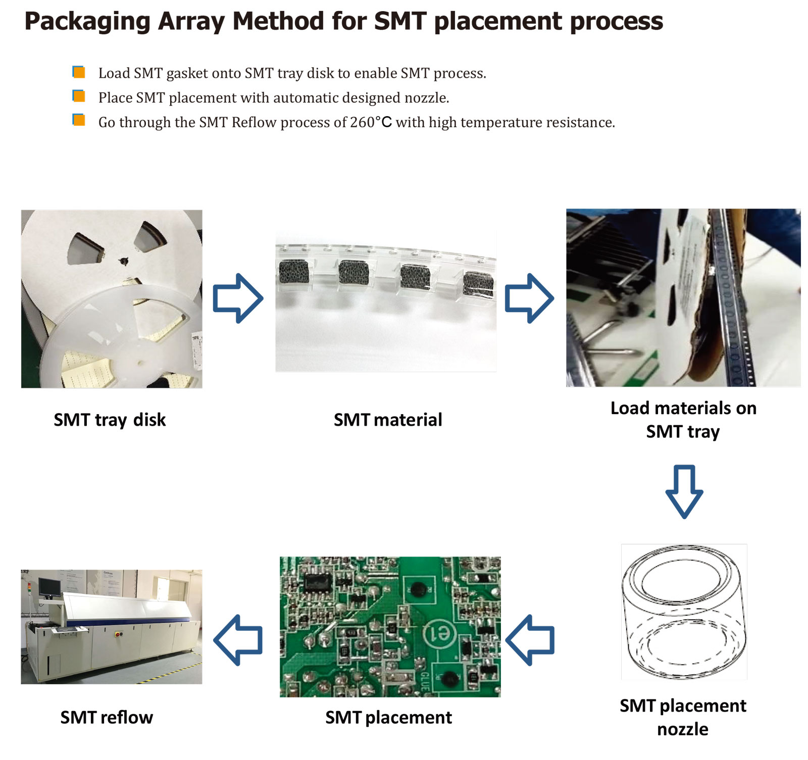 ShielditeTM SR系列SMT橡膠墊片是一種矩形形狀、寬度較窄的產品,設計用于PCB和FPCB的接地墊或連接器,能夠有效屏蔽電子產品的EMI/RF噪音。是一種可回流焊接的彈性導電介質,可以通過SMT(表面貼裝技術)安裝在PCB和FPCB上。